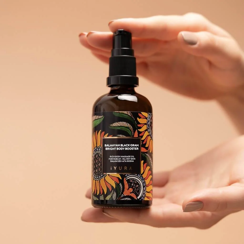 Balaayah Black Gram Body Booster can be left on through the day as a moisturizer or washed off after a rigorous massage or Abhyanga.